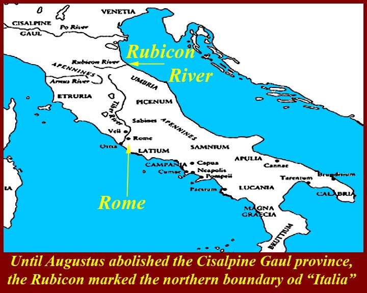 El problema con cruzar el río Rubicón consistía en que ningún ejército con su comandante podía ingresar al imperio romano sin autorización, siendo el caso contrario un acto de guerra y de rebelión contra el imperio mismo. Fernando Lillo Redonet, doctor en filología clásica y escritor, señala que: