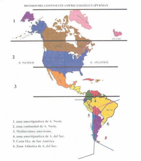 Ahora veamos el siguiente mapa, tomado de mapamundis, donde se aprecia que la disposición geopolítica de N. Spykman es totalizadora y en mi concepto eficiente, pues integra al Golfo de México, mientras muchos mapas del Caribe lo omiten: