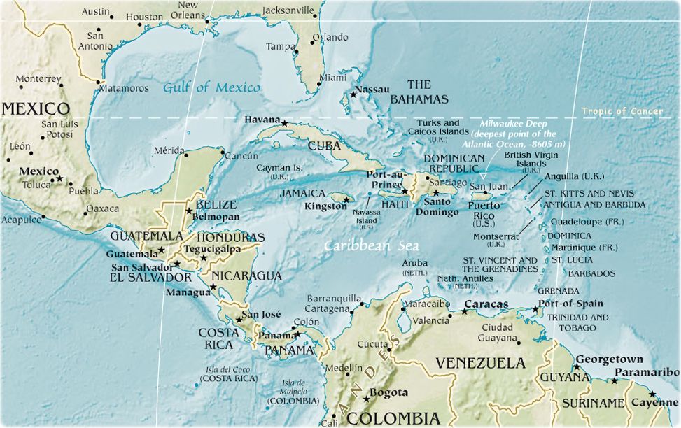 El Caribe y el Golfo de México dentro de un contexto geográfico y oceanográfico técnico, no comparten las mismas corrientes oceánicas, se delimitan por las islas y las costas de América central y del Sur; además la influencia de la colonización histórica del Caribe, varía respecto a la hispánica predominante en la América continental.